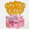 Incluye 2 bombonas de helio Maxi con capacidad 2x0,42m3 y 100 globos de látex de 28cm/11"Ø de color oro metalizados. Y 50m+50m de cinta blanca para atarlos de regalo.